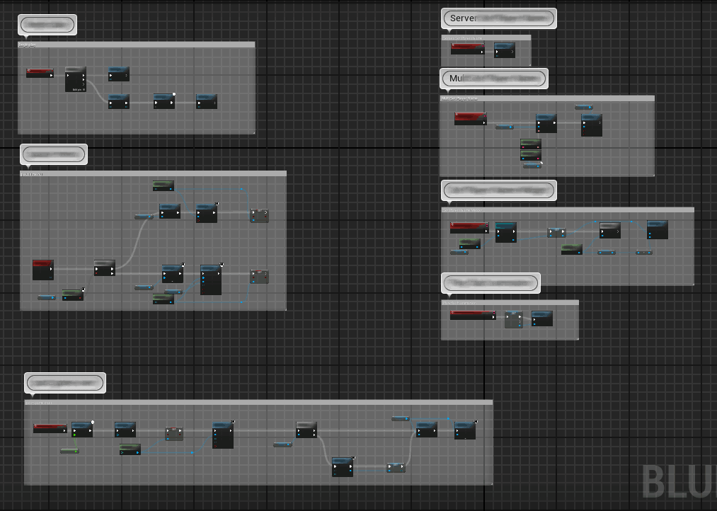 Blueprint nodes aligned like a battalion on parade.